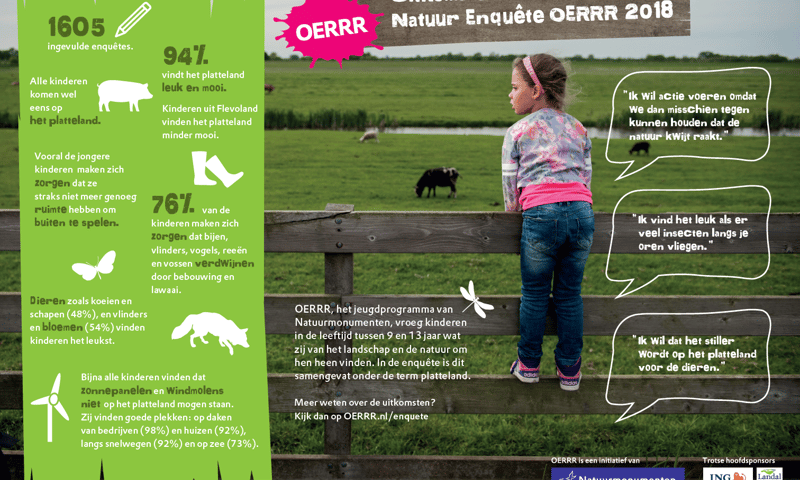 Uit de uitkomsten van het natuuronderzoek blijkt dat kinderen het behoud van het platteland en het natuurlijk landschap in Nederland belangrijk vinden. Jonge kinderen om te kunnen spelen, oudere kinderen vanwege de rust en stilte. Dieren en planten worden door kinderen als belangrijk onderdeel van het landschap gezien.