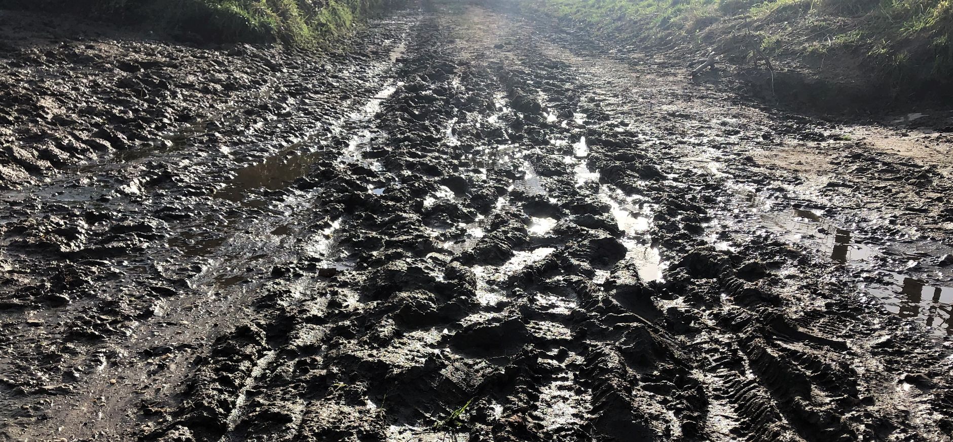 Hou daar -meer als eerder- rekening met “pratsjwandelen”. Glibberen en glijden door modder en plassen water. De waterdichte schoenen met een ruw profiel en eventueel een wandelstok zijn dan onmisbare bagage. Het is sowieso de natte tijd van het jaar, plaatselijk is er nog meer waterafvoer door de veranderende klimaatomstandigheden en… er zijn veel meer wandelaars op pad die hier allemaal hun (glibber)route zoeken!