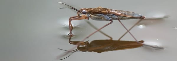 Het water zit vol leven. Een van die bewoners is de roofwants die op andere insecten jaagt. Ook soorten als de beekloper en schaatsenrijder zijn roofwantsen. De haren op de pootjes van deze wantsen zitten zo dicht bij elkaar dat er lucht tussen blijft zitten. Hierdoor scheren ze als een hovercraft over het water.