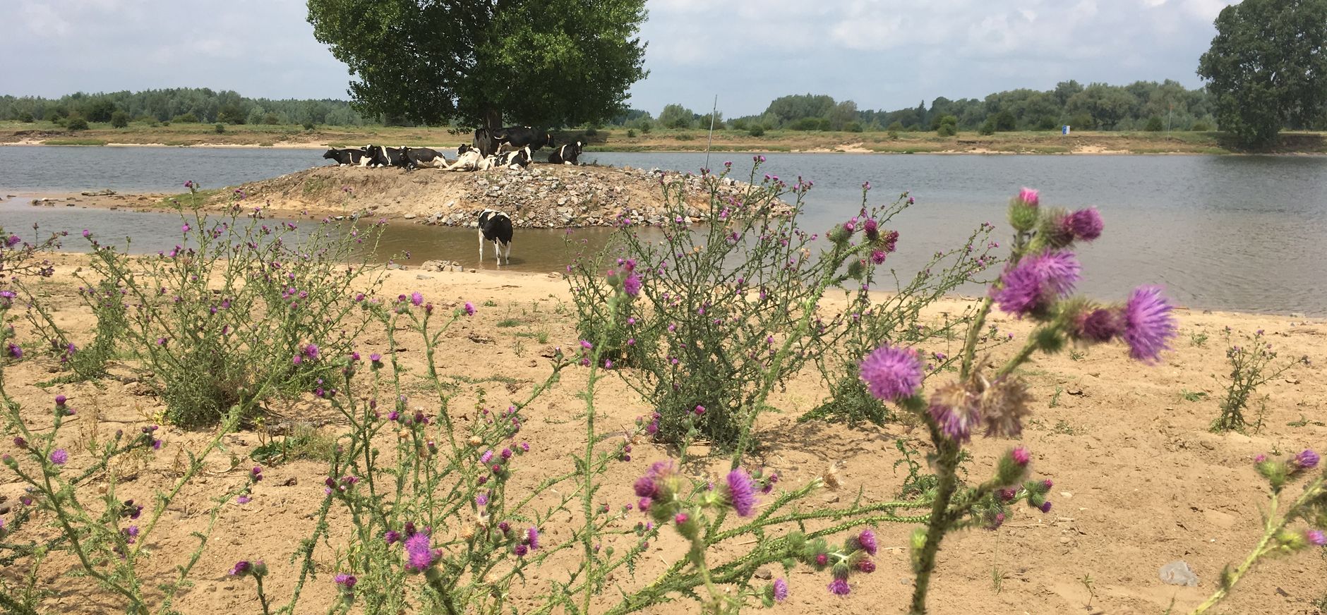 In deze uiterwaard kun je verschillende 'prikplanten' zien. De kaardenbollen en distels zijn voor koeien en mensen misschien minder leuk als prikplant, maar voor insecten en vogels zijn het geweldige planten! Wanneer de planten in bloei zijn, stikt het er van de insecten, zoals bijen en vlinders. En als de zaden er zijn, dan komen de putters erop af gevlogen. Deze vogels vallen op door hun prachtige kleurenkleed en zwart-wit-rode kopjes. Ook de meidoornstruiken die je hier vindt, bieden volop plek aan allerlei vogeltjes.