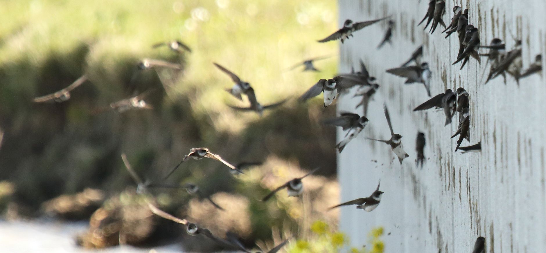 Een grote kolonie oeverzwaluwen eet per dag tot wel 10 kilo muggen! De flat heeft 275 appartementen en deze zijn in de periode april t/m augustus bijna allemaal bewoond. Daarna vliegen ze weer terug naar Afrika.