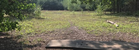 Nu zie je er niets meer van en je tent opzetten mag hier ook niet meer, maar de route loopt op deze plek over een oude camping. De camping werd ooit in de jaren dertig opgericht, waarna deze tientallen jaren floreerde. Er werden zelfs enkele bungalows gebouwd. Maar veranderende wensen van bezoekers en de opkomst van andere vakantieparken zorgden ervoor dat de camping door de tijd werd ingehaald. Toen Natuurmonumenten in bezit kwam van de grond is alles gesaneerd. Alleen de open plekkenĀ herinneren nog aan de camping van weleer.