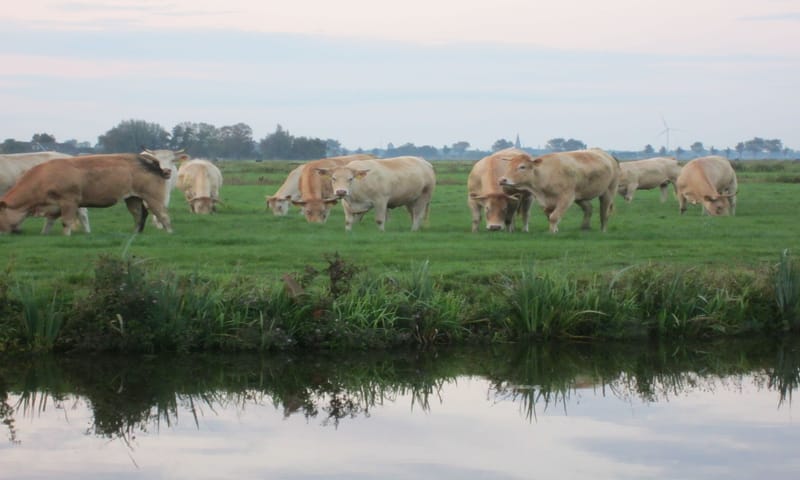De koeien die haar vader meenam uit Frankrijk, zijn vleeskoeien van het ras Blonde d’Aquitaine. Het is een sober ras; ze hebben niet veel nodig en zijn wel sterk. Ze doen het perfect op natuurgraslanden waar het niet draait om een zo hoog mogelijke grasproductie. En dat past perfect in de visie van Jos en Astrid: “We zien onszelf niet als vleesproducenten, maar als natuurbeheerders.”