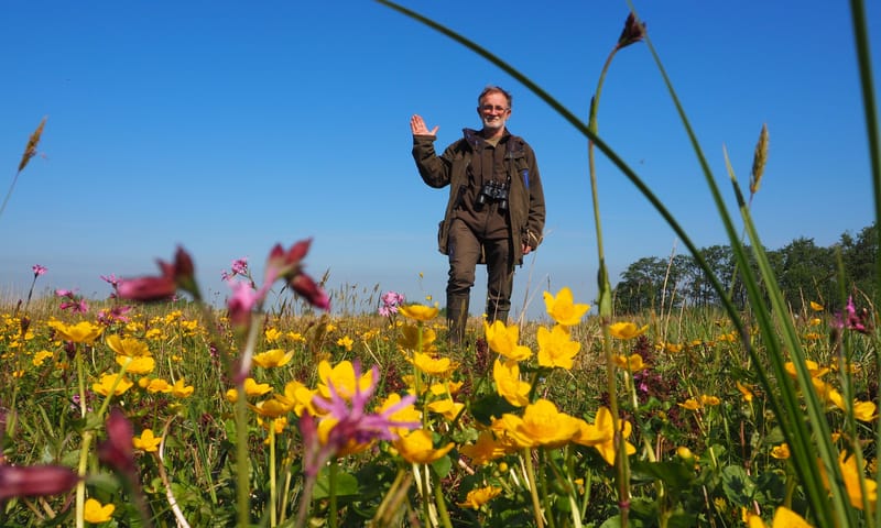 Boswachter Guus in dotterbloemhooiland op de Vlietlanden