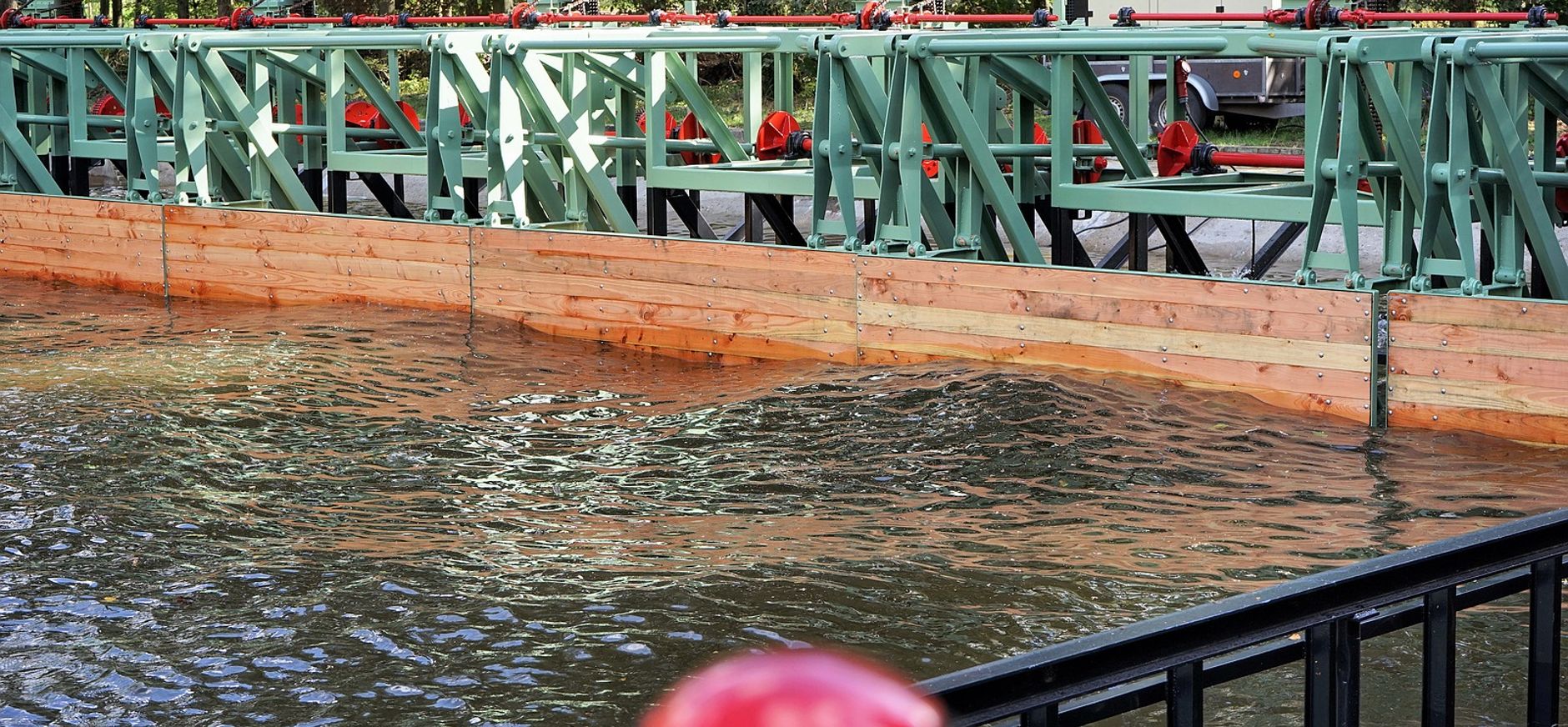 De restauratie van model Golfbak in het Waterloopbos is een uniek moment. Voor het eerst is één van de historische waterloopkundige modellen weer tot leven gewekt. Ook de bijbehorende romijnstuw is volledig hersteld. Belangrijke stappen in de uitvoering van de ontwikkelagenda Waardevol Waterloopbos. Vanochtend hebben directeur Rijksdienst voor het Cultureel Erfgoed, Arjan de Zeeuw en gedeputeerde van de provincie Flevoland, Michiel Rijsberman, de gerestaureerde Golfbak geopend door twee van de zeven golfmachines weer in werking te stellen. Met een druk op de knop zijn de twee golfmachines aan gezet waardoor de tandwielen gingen draaien en de golfschotten in beweging kwamen. Na enkele decennia golfde het water weer door de Golfbak.