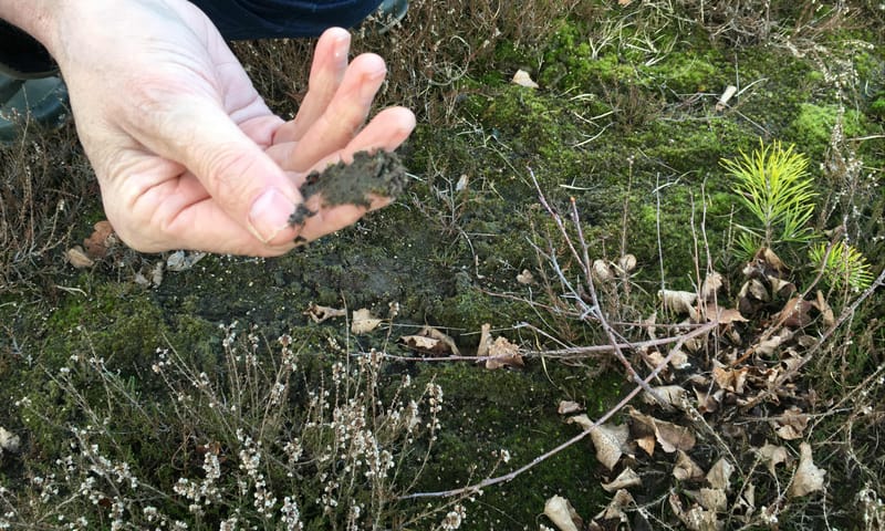 De verzuurde bodem kan zich nauwelijks nog herstellen, benadrukt Robert. “Normaal gesproken worden zuren in de bodem geneutraliseerd door zogeheten basen, stoffen die als tegenhanger fungeren. Die basen zijn in droge zandgronden afkomstig van mineralen in de bodem. Maar door de enorme hoeveelheid zuur die de afgelopen decennia in de bodem terecht is gekomen, zijn vrijwel alle belangrijke mineralen verweerd. Ze zijn als het ware opgelost. De bodem heeft nu vrijwel geen weerstand meer en verzuurt in hoog tempo.”