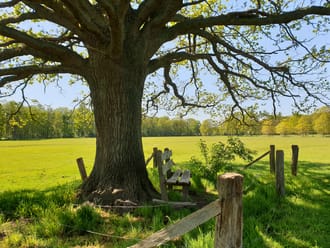 Dwars door een weiland en even genieten op het bankje onder de solitaire boom. Vervolgens bij de boer over het erf en via een heideveldje vol heideblauwtjes en bospercelen met kabbelende beekjes je weg zoeken. In Duivelshof kan het.