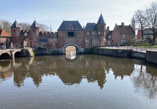 Fiets door tot aan het water. Rechts zie je de Koppelpoort, een prachtige poort uit de middeleeuwen.