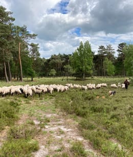 Je passeert hier de schaapskooi van het Grote Veld. Een kudde Grote Heideschapen graast op de heide en omliggende graslanden; daarmee houden ze het landschap open. Bijkomend voordeel is dat de schapen in hun vacht onbedoeld plantenzaden meenemen. Zeldzame plantensoorten kunnen zich zo verder verspreiden.