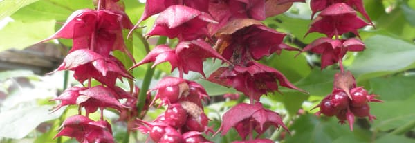 Langs de Westmuur van de tuin groeien allerlei klimmende struiken, waaronder de Kiwi. Onder die klimstruiken groeien verder de Bekervaren en de Leycesteria formosa. De hangende bloemen van deze plant lijken net lange oorbellen, vandaar de naam Grootmoeders oorbellen.