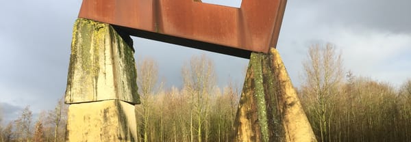 Het kunstwerk lijkt uit het lood te staan. Gjalt Blaauw houdt er van om met evenwicht te spelen. Het natuurlijk evenwicht wat deze kunstenaar zoekt, probeert Natuurmonumenten ook in Kardinge aan te brengen.