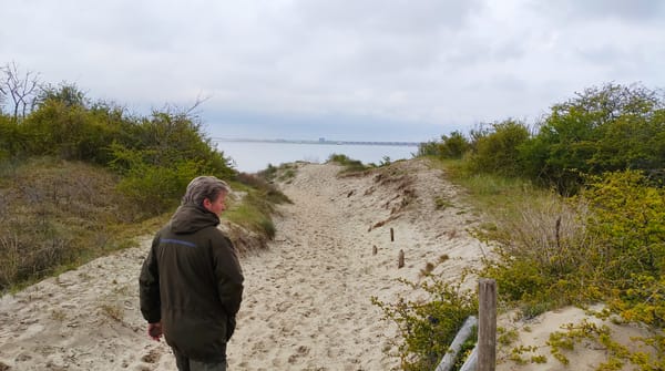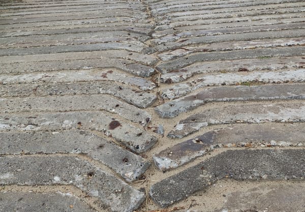 Let bij het verlaten van het strand even op de bijzondere verharding van de steile strandopgang. Deze stukken beton in gekke vormen betreffen eigenlijk balken van tetraëders, versperringsdriehoeken. Ze werden in de Tweede Wereldoorlog door de Duitse bezetters hier op het strand geplaatst. Dit om te voorkomen dat pantservoertuigen en landingsvaartuigen het strand konden gebruiken. Het was onderdeel van de Atlantikwall, de verdedigingslinie langs de kust van Europa. Na de oorlog kregen deze tetraëders een nuttige bestemming.